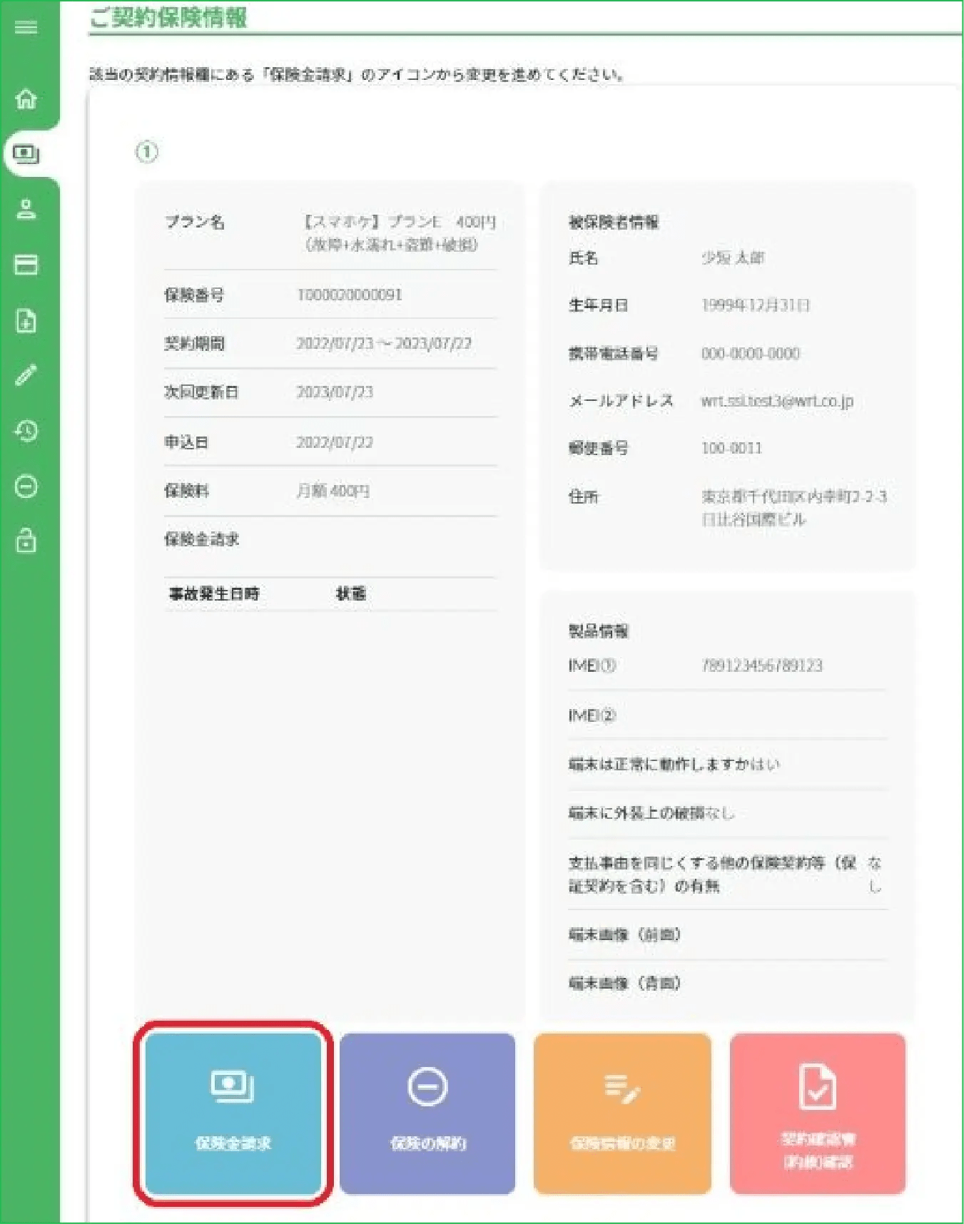 - ④担当者がマイページより③の情報を提出し、保険金請求をしてください。